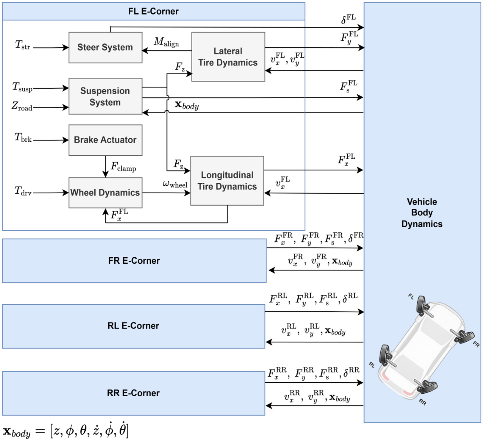 - This paper presents the development of an integrated vehicle dynamics simulator for e-Corner systems and its validation using simulation-based reference data. The …